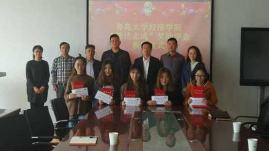 “德达志成”奖助学金捐赠人、青岛德达志成化工有限公司总经理、ICG集团亚太地区负责人、青大国贸系2000级优秀校友邹超先生以及他的团队——李毅先生、郭夏女士、赵平女士;樱花动漫