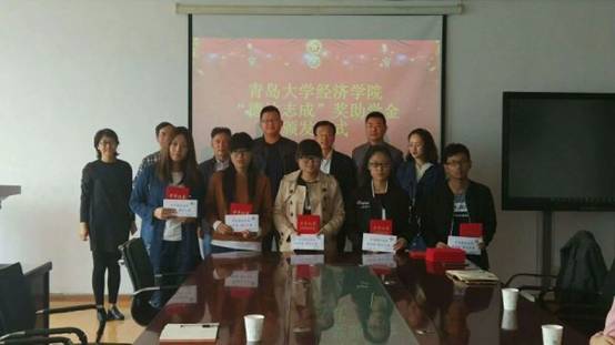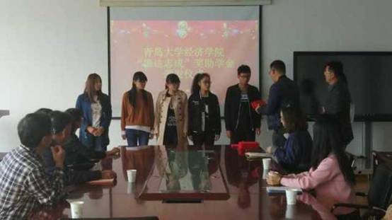 党委书记崔洪林老师,院长刘喜华老师,党委副书记郭梅老师,国贸系主任张锡宝老师,学工办主任任龙老师,辅导员姜茜老师,以及本次获得奖助学金的十位同学出席本次颁发仪式。颁发仪式由任龙老师主持。