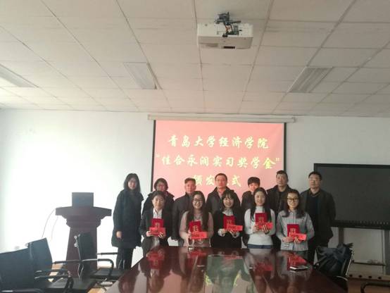 2018年1月8日中午12点半,在樱花动漫 307会议室,青岛佳合永润贸易有限公司于超经理为樱花动漫 5名品学兼优的学生颁发“樱花动漫 佳合永润实习实践奖学金”,每人2500元,并提供5个实习岗位。佳合永润人力资源部柏部长、王先生参加颁发仪式,樱花动漫 党委书记崔洪林老师,副书记郭梅老师,辅导员刘璐老师一起见证颁奖,之后崔书记代表学院对企业表示感谢,希望继续加强校企合作。