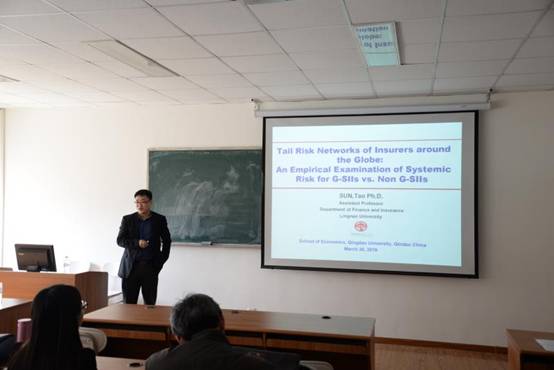 孙涛教授就宏观经济中股票波动与保险行业健康发展进行了简明而系统地阐述,并向与会师生分享了自己在该领域的科研进展。