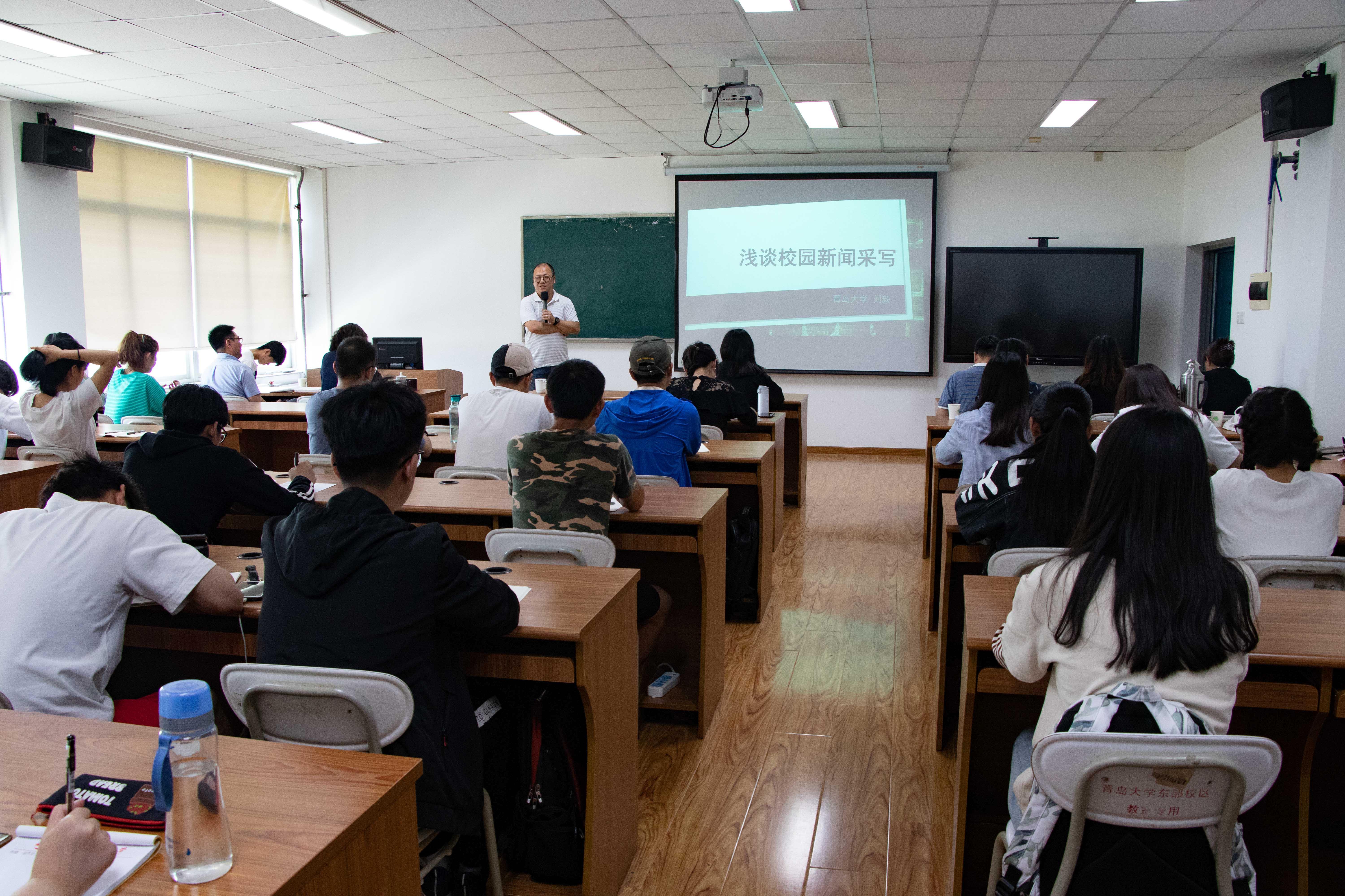 办公楼411室举行。本次培训邀请校党委宣传部部长、樱花动漫主任、报社社长于红波,新闻网及报社编辑刘毅以及学校视频中心编导李亚楠作为主讲嘉宾。院党委副书记王海荣、各职能科室负责人、辅导员、宣传中心成员等共50余师生参加培训。