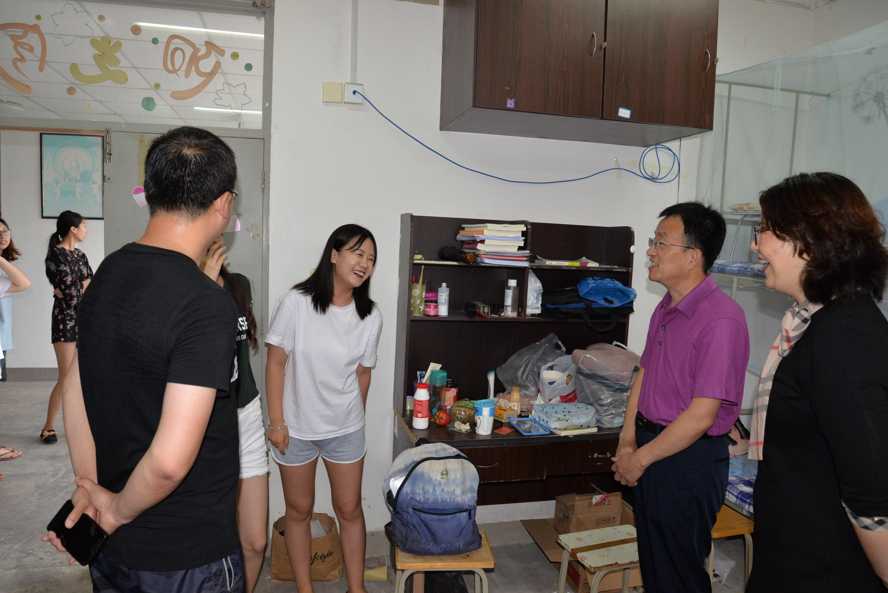 院长刘喜华、党委副书记王海荣和2015级辅导员李冉一同走访毕业生宿舍,与毕业生面对面接触,心贴心交流。老师们听取了他们对学院发展建设的意见和建议,询问他们对于未来的展望与规划,向他们表达了离别之际的不舍并给予了真挚的鼓励和祝福。走访临近结尾时,学生们坚持把老师们送到楼下,在门口与老师依依惜别,有些同学还为此流下了感动的眼泪。