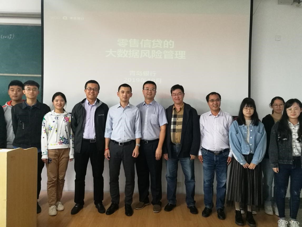 2.2019年10月11日,聘请青岛银行信用卡中心负责人薛峰来校授课,举办了“零售信贷的大数据风险管理”专家讲堂。主要讲授了信用卡风险策略、数据分析和资产证券化等内容。