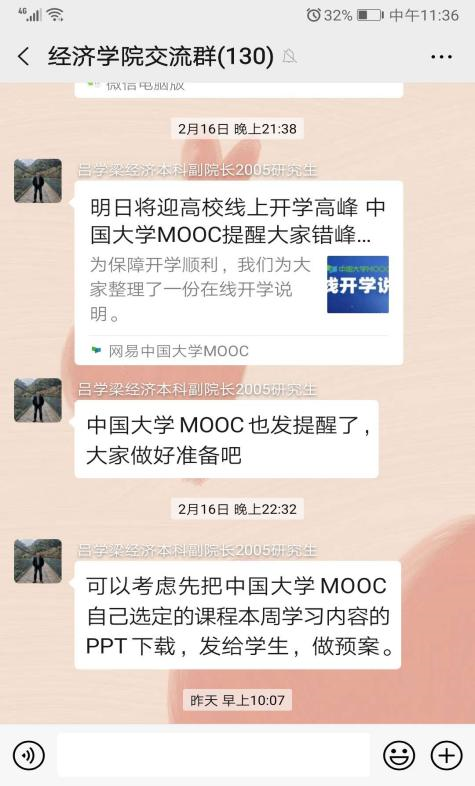 教学管理和学工管理教师也积极行动起来,落实线上教学管理工作流程,组织学生们通过多种形式掌握线上学习工具;调查了解学生们遇到的线上学习困难和问题,及时沟通协调解决;组织班级通过各种主题方式落实好上课出勤情况和听课纪律,及时反馈课堂教学效果,加强与任课教师互动。同时,学院也加强宣传引导,学院微信交流群中每天都会围绕线上教学进行工作指导和互动交流,学院官微也推送了《专属青大经院课表来啦》《2020年春季学期樱花动漫