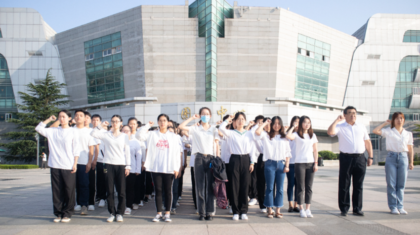 21级新生辅导员,21级新生,在金家岭校区图文中心门口前集合,参加升国旗仪式。国歌响起,在场全体师生庄严肃立,目送国旗冉冉升起。脑海中,是革命先烈舍生取义的画面,是开国大典激动人心的画面,是万丈高楼平地而起的画面……主题朗诵:“请党放心,强国有我!”再次将全场气氛点燃,雷鸣般的掌声一次次响起,21级新生们已完全被诗歌的深情感染。这次朗诵激励着21级新生争做有志气,有骨气,有底气的新时代青年。