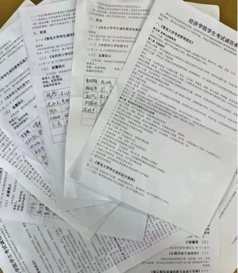 学生考试诚信承诺书》,使同学们深刻认识到考试作弊的危害及严重后果,向同学们提出了诚信考试、实事求是的切实要求。