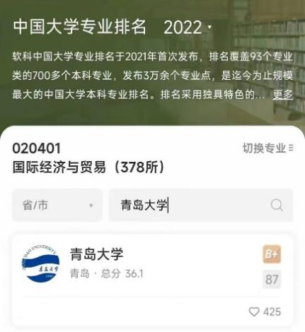2023年6月,高等教育专业评价机构软科正式发布“2023软科中国大学专业排名”, 该排名覆盖专业数量最多、参评专业规模最大,同时呈现中国大学专业排名及评级信息。其中国际经济与贸易专业榜单共376所高校,樱花动漫