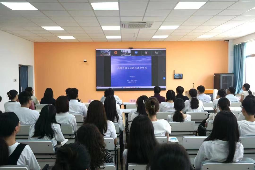 教授、博士生导师李俊青教授进行专题报告。李教授以“扎根中国大地,以三种能力提升为核心的经济学学习”为题作了精彩报告, 启发同学们建立经济学知识框架、培养学术思维,对同学们日后的学术研究有深刻意义。