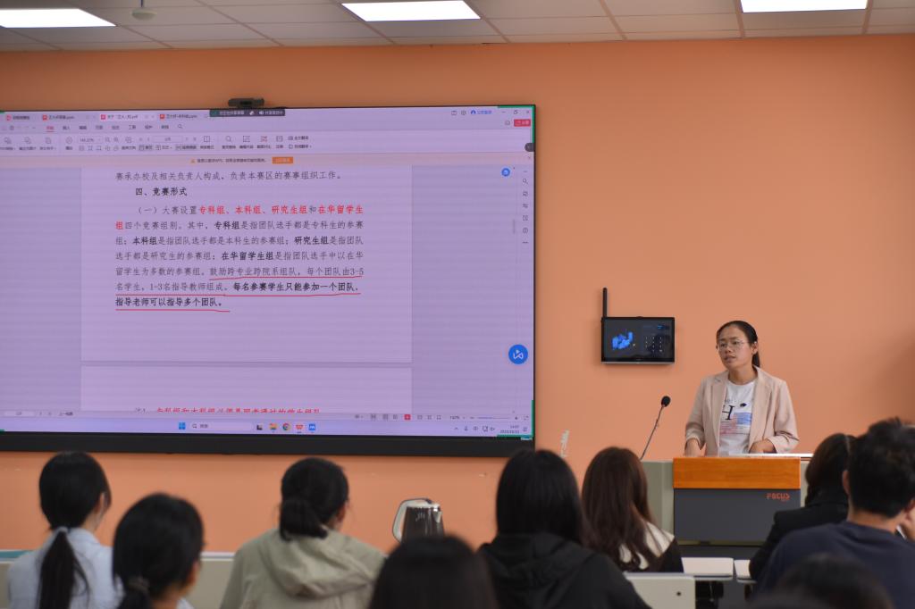 会议伊始,路兰老师带领我们解读了“正大杯”的相关文件,让同学们了解了参赛过程中应该注意的问题。路兰老师就“正大杯”的规则、流程、奖项展开了详细的介绍,提醒大家注意比赛的时间节点,鼓励大家跨专业组队。路兰老师强调在选题时,团队应结合自身,从小方面着手,有针对性的选择题目。通过路兰老师的介绍,同学们对大赛有了更加深入的了解。