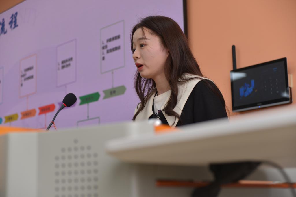 获得国赛二等奖的金维佳学姐向同学们介绍了企业命题赛的优势,从不同的角度更加深度地解读了赛事规则。她着重介绍了实践过程中可以采用的调查方法。
