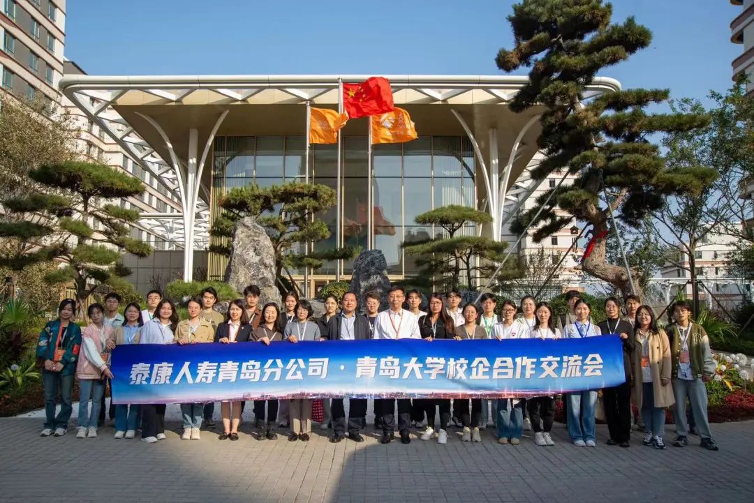 党委书记邱建国、教师刘学宁、辅导员周小昀、曹影、程漫漫以及25名保险学硕士生一行赴泰康人寿青岛分公司开展访企拓岗行动。