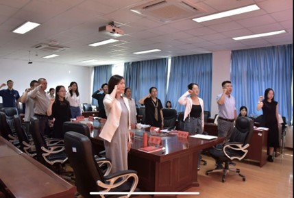 新生班主任聘任环节,任龙宣读新生班主任名单,张之峰等11位教师被聘任为2024级班主任。于文洁为新生班主任颁发聘书及班主任手册,并致以热烈的祝贺与深切的期望,鼓励他们在班主任岗位上发光发热。新生班主任任龙领誓,全体班主任庄严宣誓:忠诚于党和人民的教育事业,恪尽职守,育人为本;明德守法,爱生乐群;博学求真,守正出奇;追求卓越,勇于担当,为实现民族复兴、推动人类文明进步而奋斗。