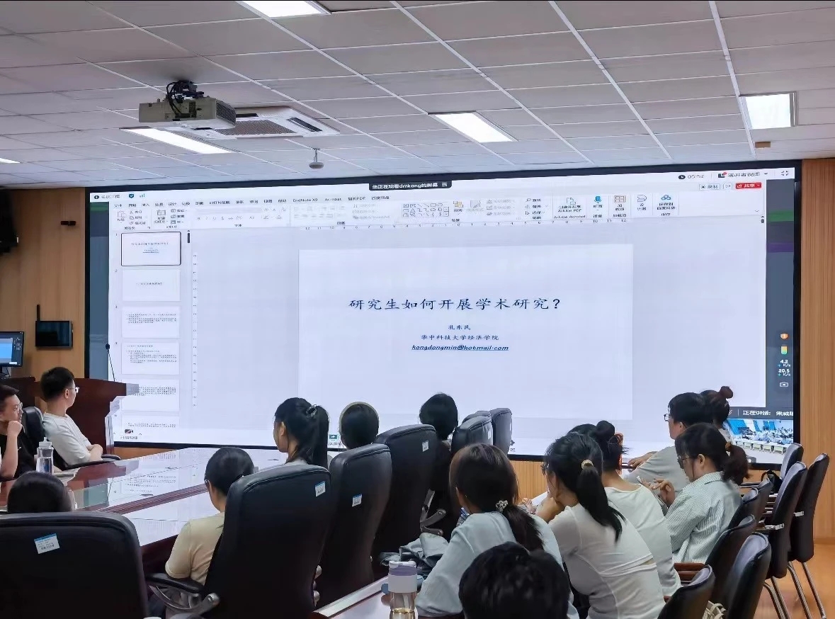孔东民教授作了题为“研究生学术研究入门”的主题报告,结合自己的科研经验,对如何进行学术研究交流分享。引导同学们培养科研思维,提高科研能力,启发同学们发现研究选题、培养学术思维,对同学们日后的学术研究有深刻意义。