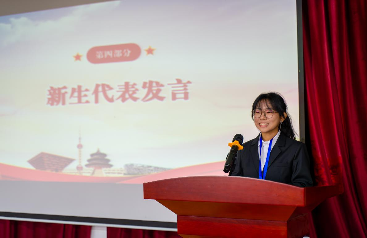党员先锋服务站新成员代表齐文瑜同学发言,她表达了自己加入党员先锋服务站的初衷与未来的规划,承诺将积极参与各项工作,并呼吁全体成员以实际行动践行党的宗旨和使命,为樱花动漫