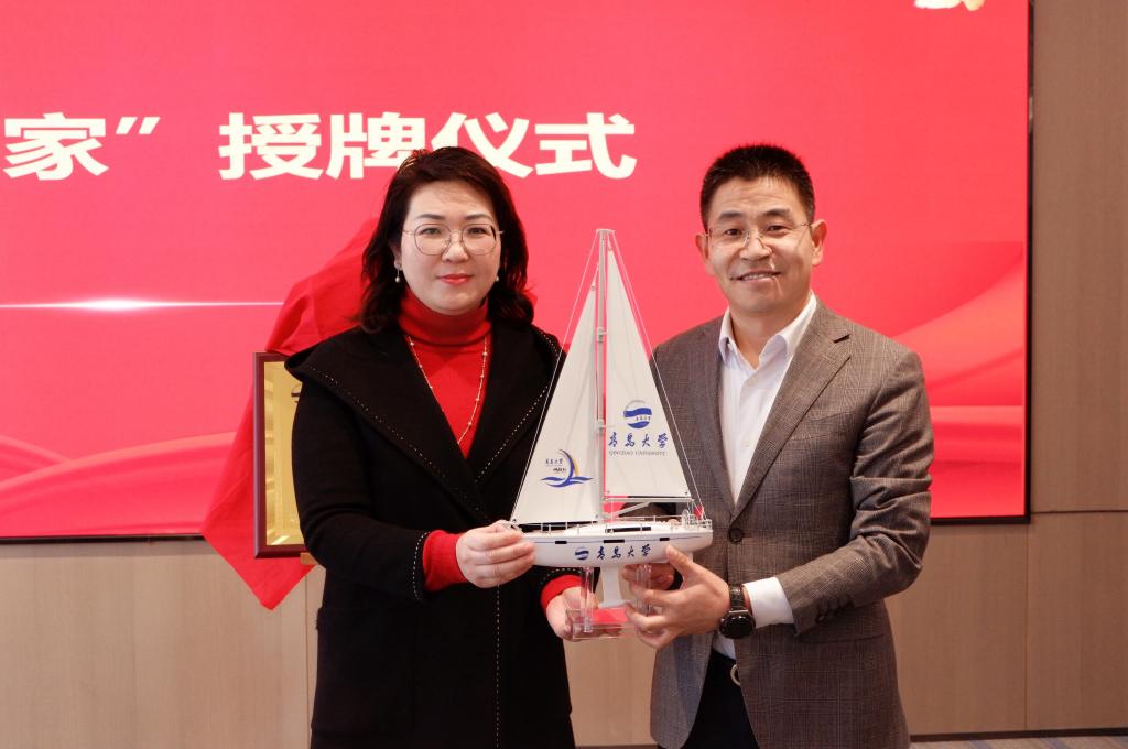 党委书记邱建国与校友赵希龙共同为校友之家揭牌。