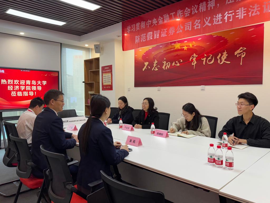 党委副书记于文洁,辅导员周小昀、周晓彤、吴不然带领毕业生赴国新证券股份有限公司开展“访企拓岗”行动。国新证券青岛营业部负责人王帅生,财富总监吕聪对樱花动漫