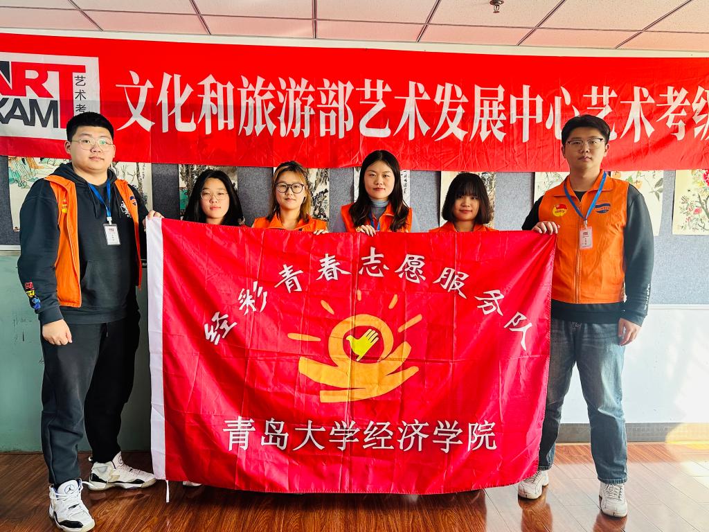 经彩青春服务队六名志愿者赴青岛市妇女儿童活动中心为青岛市艺术等级考试考务工作提供志愿服务。志愿者们以实际行动为考务工作公平、公正、顺利有序地开展贡献青春力量。