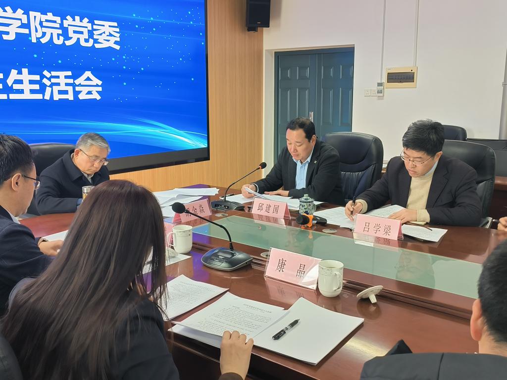 2024年度党员领导干部民主生活会在守实楼307会议室召开。校党委书记胡金焱和督导组的相关同志到会指导,学院党委书记邱建国主持会议,学院党委委员全体参加会议。