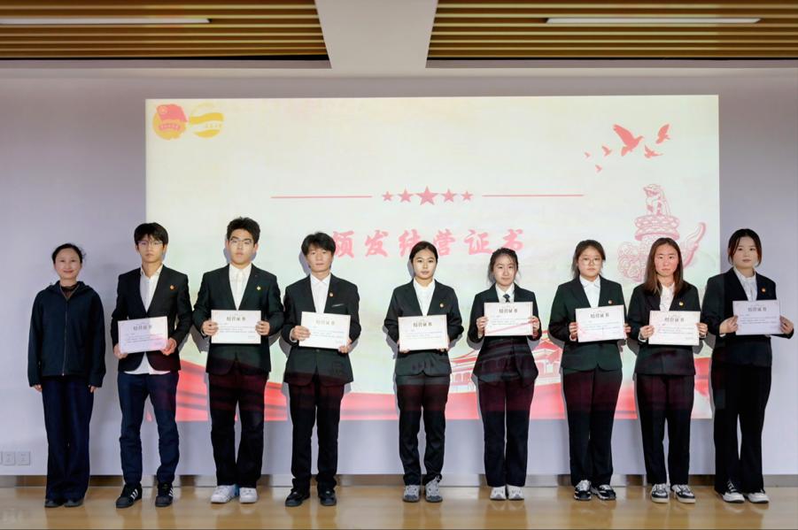 院团委书记戴俊杰讲话。戴俊杰在闭营仪式上向结业同学表示祝贺,感谢主讲老师和工作人员。各位主讲老师围绕思想引领、责任担当、技能提升和职业规划等维度授课,让营员们在知识、技能、思想、信念等方面收获颇丰。她希望同学们将所学所得转化为实际行动,立志成为青年政治骨干,坚定理想信念,勇挑时代重担,主动参与社会实践,持续提升自我,用奋斗的青春,为民族复兴、国家建设注入蓬勃力量。