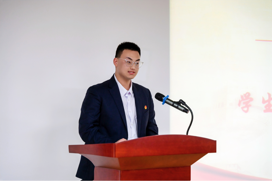 团委书记李鹏致辞。李鹏在致辞中指出,学生干部是从学生中选拔出来的骨干力量,是学校和学生之间的桥梁与纽带,是加强和改进思想政治教育的可靠力量。同时,他向学生干部提出了以下四点建议:第一“学”是学生干部的职责,要重视政治理论、专业知识学习,坚定理想信念,提高自身综合素质;第二“生”是学生干部的精神风貌,要有我要当的信念,不是要我当的杂念,收获共同成长的价值感;第三“干”是学生干部价值的基石,要有真情实干、踏实肯干、担当肯干的担当;第四“部”是学生干部的基础,要打牢学生组织机构基础,着眼于学生组织发展需要,释放创新创造的内生动力。新时代的学生干部要全面把握学生工作的内涵与路径,真正形成政治自觉、思想自觉和行为自觉,才能不忘初心,继续前行,书写清澈、干净、担当的生动实践。