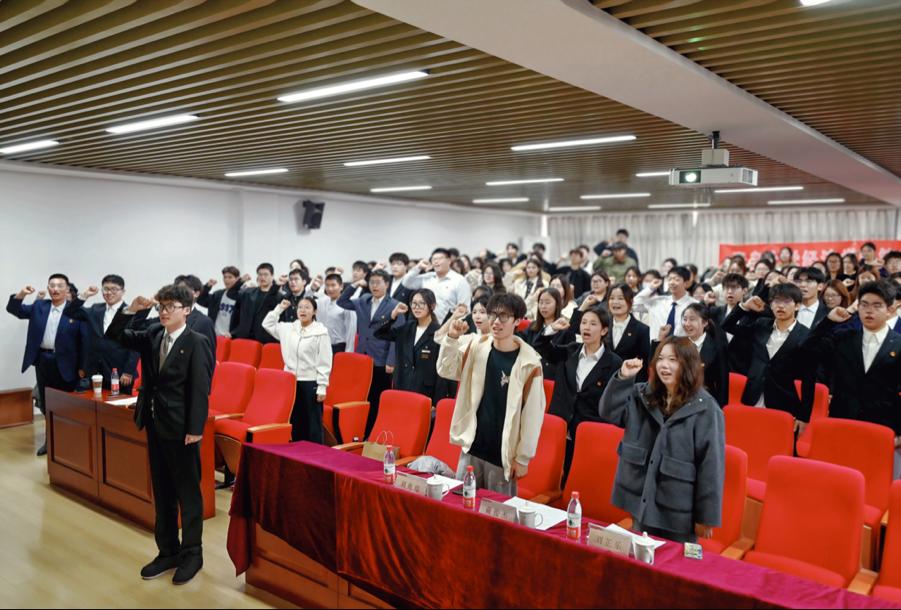 学生会主席团成员陈鹤元领誓。