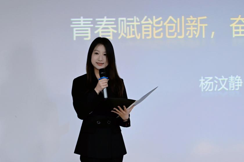 学生代表杨汶静结合自身创新创业经历分享,强调创新在创业中的关键作用,剖析女性在创业领域的独特优势,鼓励同学打破桎梏、勇敢实践。