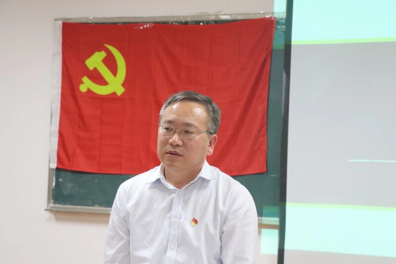 学生第一、二、三党支部在3号实验楼411室,联合举行“我的初心使命”主题党日教育活动。学生第三党支部书记任龙主持。校党委组织员李同林,学生第一、二、三党支部全体师生党员以及发展对象参加活动。