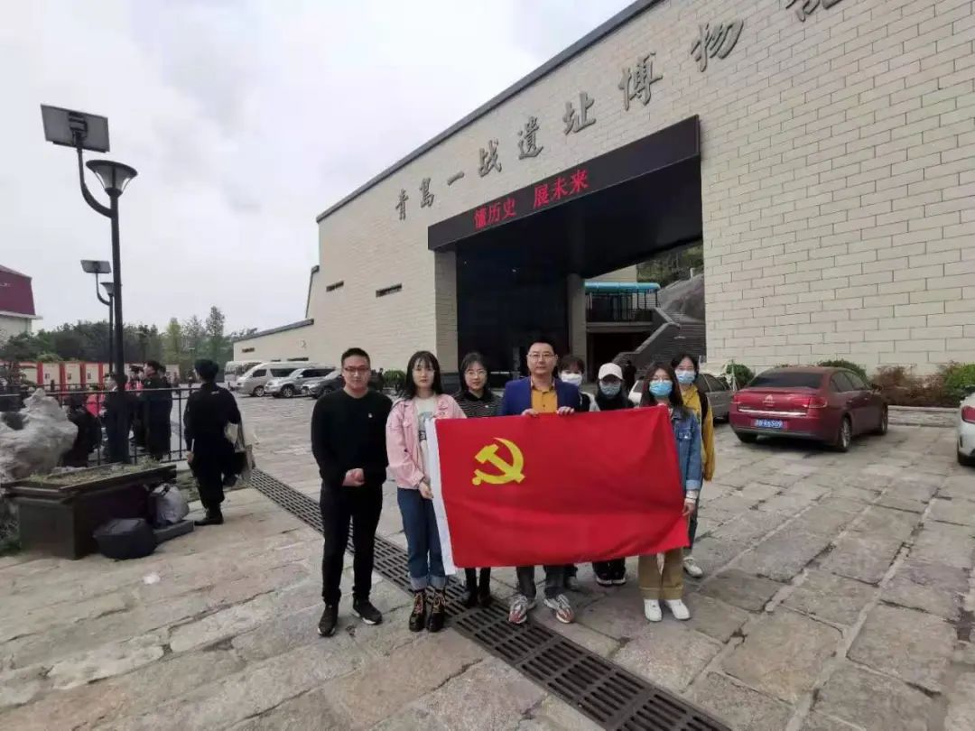 学生第三党支部书记任龙带领其党支部学生参观青岛一战遗址博物馆。