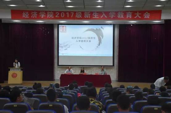 于金家岭校区图文中心四楼报告厅分别召开2017级金融类、经贸类新生入学教育大会,金融系主任吕学梁、财政系主任高玉强,国际经济与贸易系主任张锡宝、经济系主任孙毅、统计系主任李莉莉以及2017级全体金融系、经贸系新生分别参加了这两次会议。