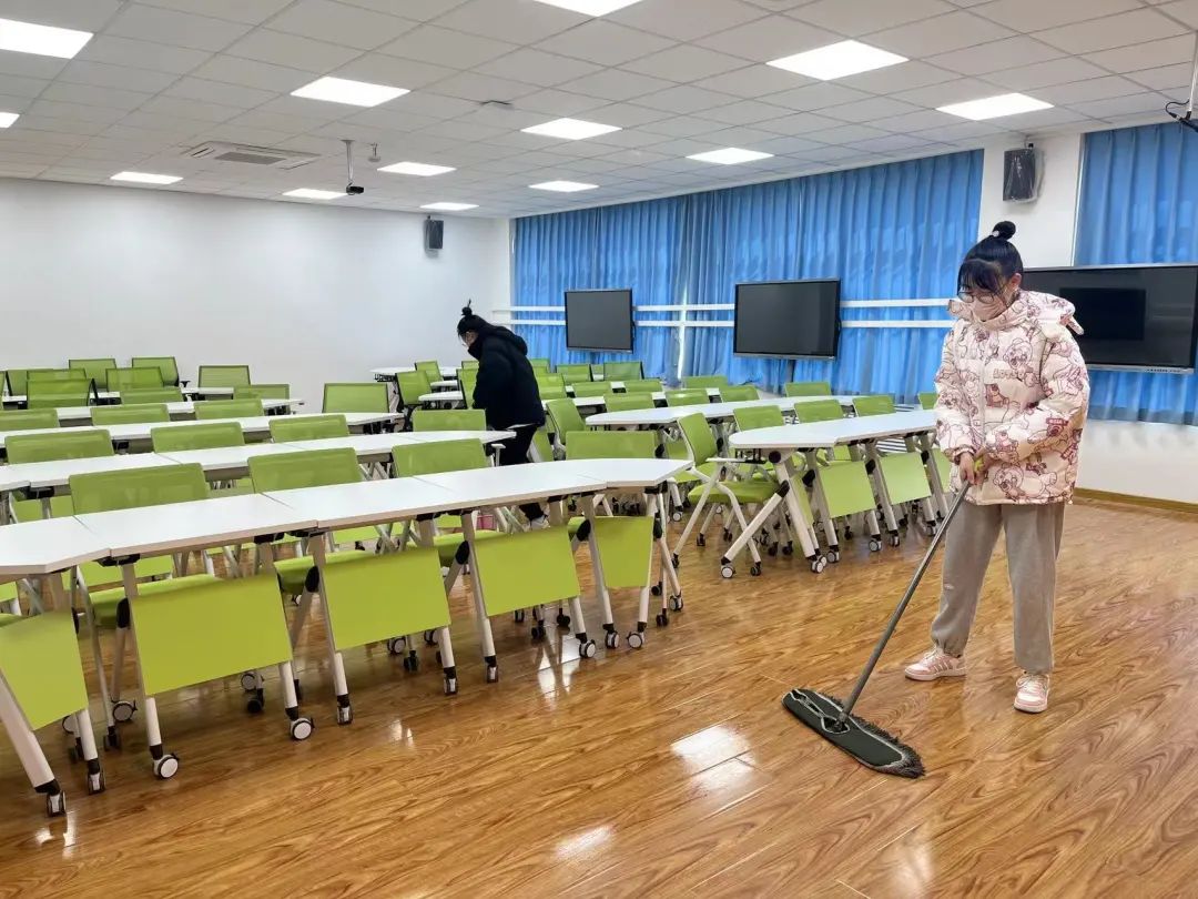 为引导学生在强身健体中积极投身校园环境维护,培养良好的生活习惯和文明共荣的意识,努力营造“人人争当校园守护者”的良好氛围。樱花动漫 开展“美丽青大你我共建”志愿服务活动——我为学校办件事,围绕“文明教室”主题开展劳动教育活动。