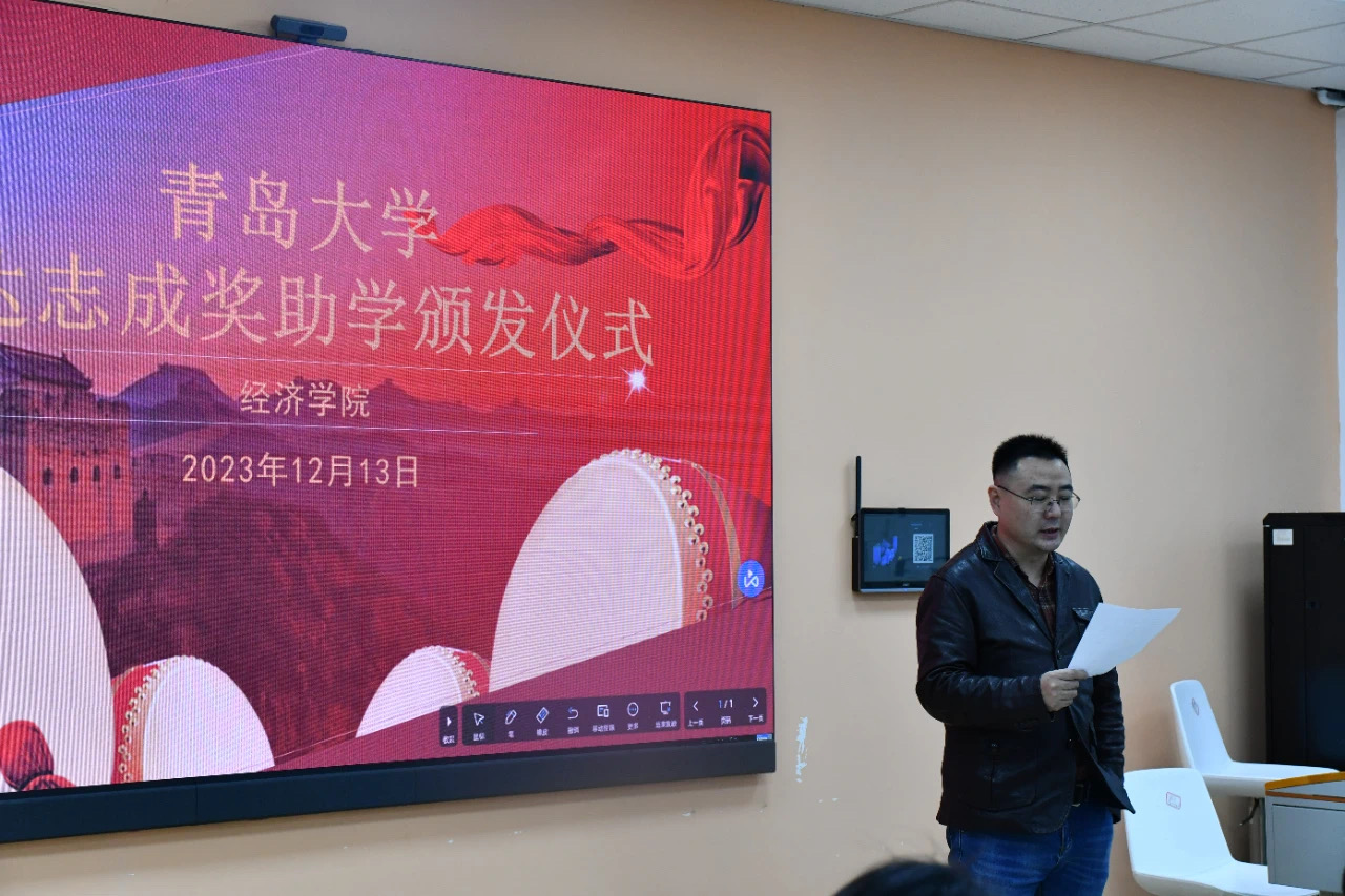 “德达志成”奖助学金颁发仪式在金家岭校区守实楼423隆重举行。青岛德达志成化工有限公司总经理、2000级国贸优秀校友邹超,青岛德达志成化工有限公司人力资源部经理李毅,企业代表、樱花动漫