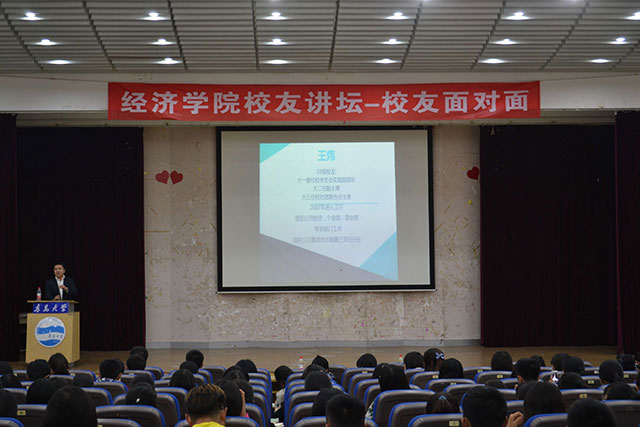 2003级校友中国工商银行青岛市南第三支行行长王炜,他对金融银行业的发展阶段和发展前景进行了说明,并从如何专业地学习、如何培养学习能力、如何处理人际关系三个问题着手进行了经验交流,分享了做人做事做学问的个人感悟。现场学生踊跃交流提问,得到解惑。本次讲座让学生受益匪浅。